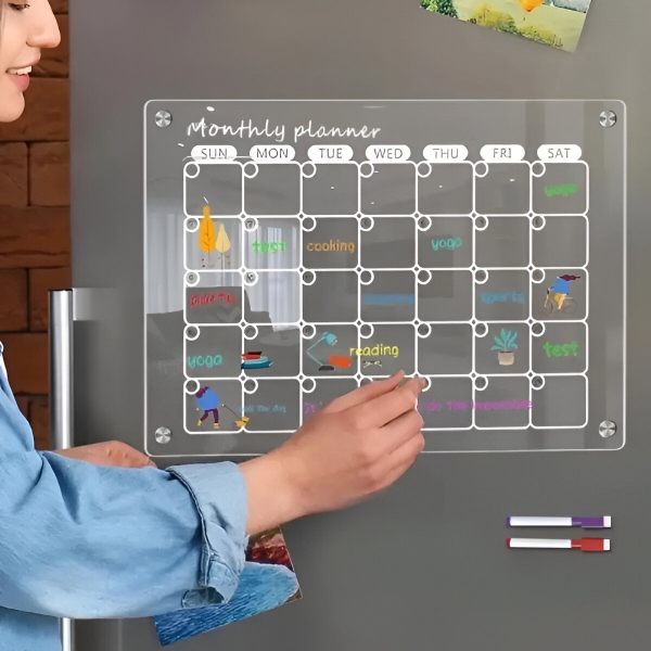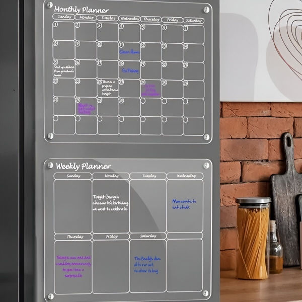 Akrylowy Kalendarz na Lodówkę Zestaw – Planer Miesięczny + Tygodniowy (40 x 30 cm każdy), 4 Magnesy, Suchościeralny, Markery w Zestawie | REUSABLEPLAN