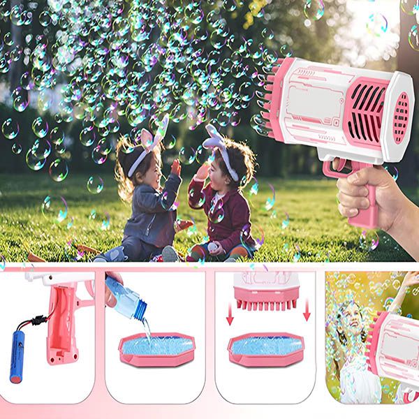Pistolet na bańki LED z 69 otworami | BUBBLEPUFF