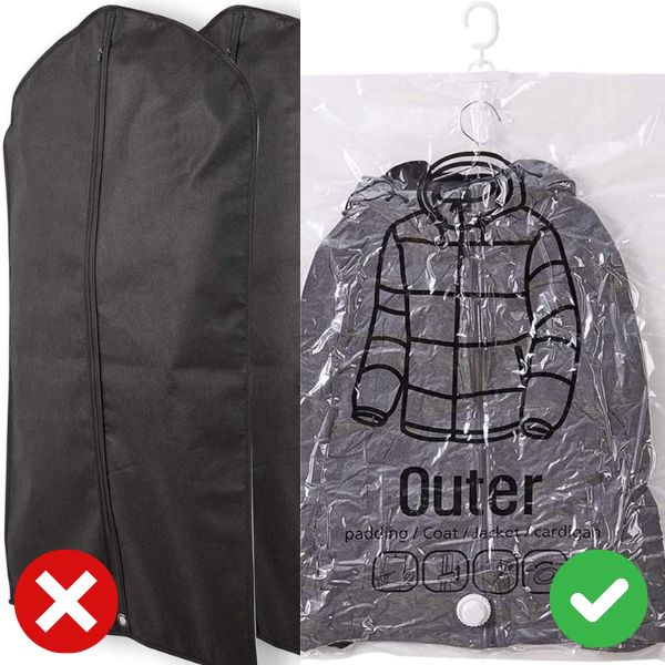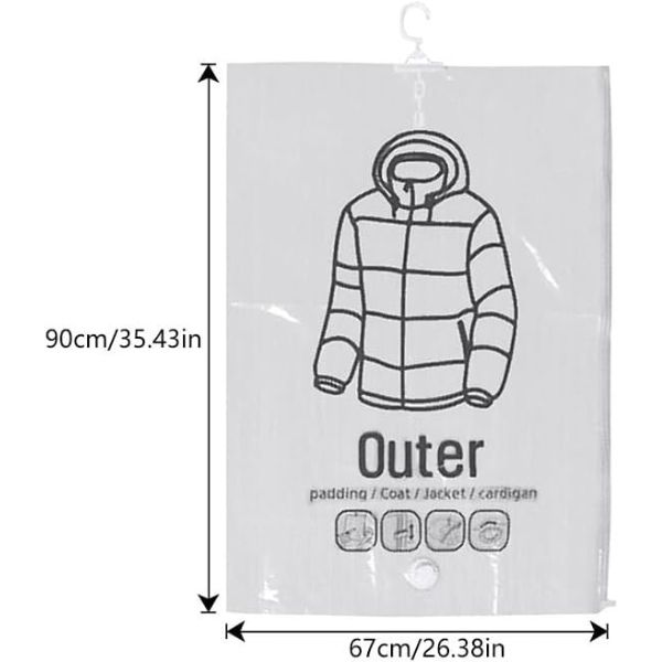 Zmaksymalizuj przestrzeń w szafie i utrzymaj ja uporządkowana przez cały rok. Użyj tych wiszących, próżniowych worków do przechowywania dużych, obszernych lub rzadko używanych garniturów, sukienek, grubych kamizelek, kurtek i płaszczy w swojej szafie. Nasze worki próżniowe chronią Twoje ubrania przed wilgocią i nieprzyjemnymi zapachami, dzięki czemu idealnie nadają się do długotrwałego przechowywania.