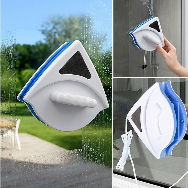🧲 Dwustronny magnetyczny design: Silne magnesy pewnie trzymają myjkę po obu stronach szyby, umożliwiając jednoczesne czyszczenie powierzchni zewnętrznych i wewnętrznych.