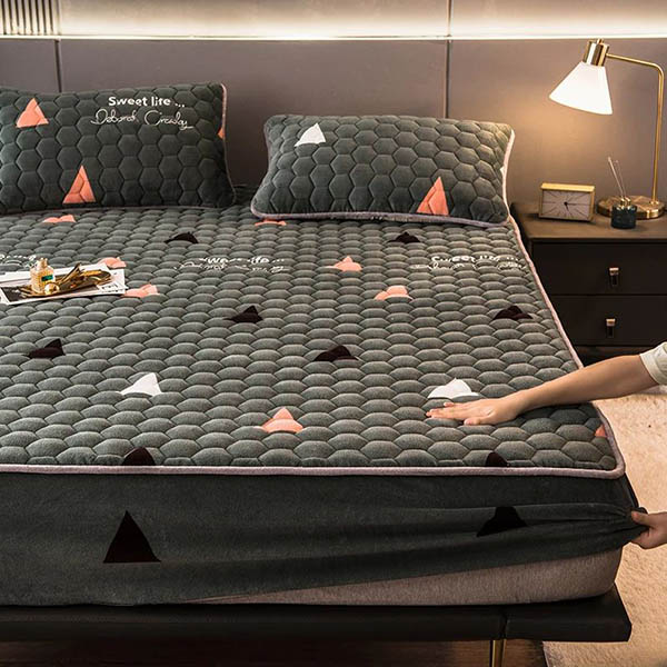🌙 Ciesz się spokojnym snem dzięki naszemu zestawowi pościeli VELVETLUX! Miękki i przyjazny dla skóry, ten nowoczesny zestaw zawiera prześcieradło i dwie poszewki na poduszki. Dostępny w kolorze szaro-zielonym z trójkątami lub różowym z sercami. 🛌✨
