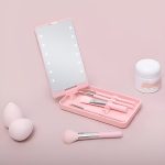 Zestaw pędzli i lusterko LED idealnie mieszczą się w torebce, dzięki czemu możesz z łatwością poprawić makijaż w dowolnym miejscu.
