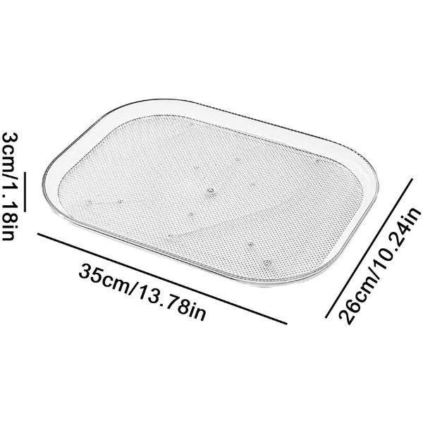 Utrzymuj porządek w lodówce dzięki naszej Przezroczystej Prostokątnej Tacce do Lodówki. Ten 360° Obrotowy Organizer do Lodówki idealnie nadaje się do łatwego dostępu i maksymalnego wykorzystania przestrzeni. Jest łatwy w czyszczeniu, ma antypoślizgowe przyssawki i nie wymaga montażu.