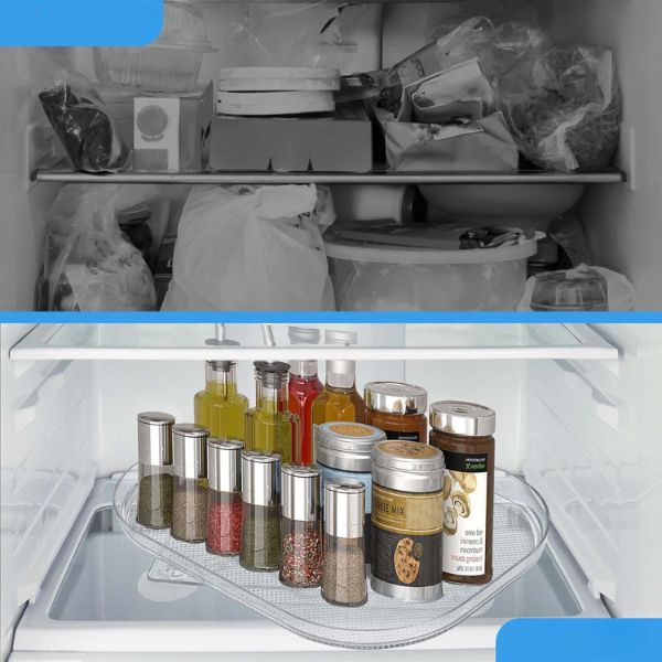 Masz dość zagraconej lodówki? SPINTRAY zapewnia porządek i brak bałaganu w lodówce, umożliwiając znalezienie tego, czego potrzebujesz, bez przekopywania się przez stosy produktów. Jego płynny obrót o 360° oznacza, że wszystko jest w zasięgu ręki, oszczędzając czas i frustrację.