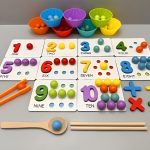 Kolorowe koraliki, faktury i narzędzia angażują wzrok i dotyk, pogłębiając rozumienie matematyki od najmłodszych lat.